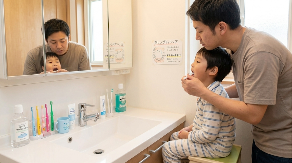 保育園や幼稚園で歯磨きのやり方を教わってくる機会もあるため、「自分で磨きたい」という意欲を尊重しつつ、「自分磨き+仕上げ磨き」のセットを日課として定着させることが大切です。