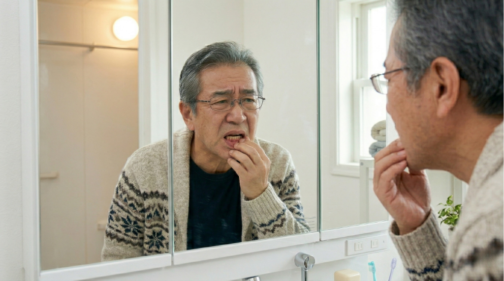 合わない入れ歯が歯茎に当たり続けると、粘膜に傷がつき、口内炎が繰り返し発生する原因になります。傷口から細菌が侵入すれば感染のリスクも高まり、特に免疫力が低下している高齢者にとっては軽視できない問題でしょう。