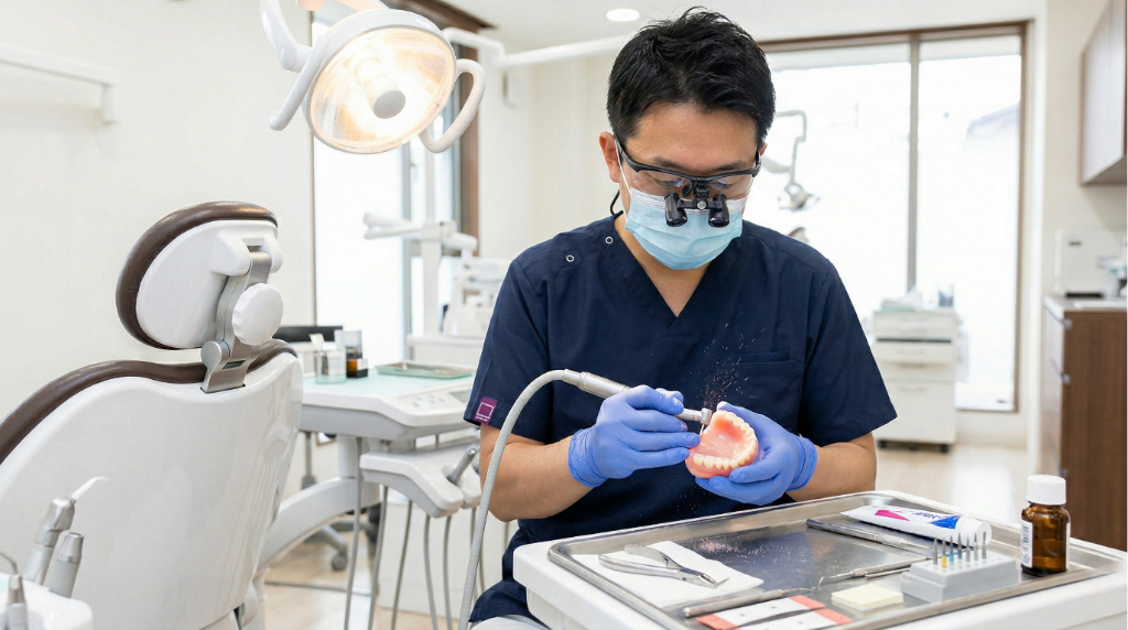 歯茎に当たっている部分を削って当たりを弱くする「削合」や、噛み合わせを微調整する「咬合調整」は、入れ歯の不具合に対するもっとも一般的な対応です。入れ歯が痛い場合、当たっている箇所はわずか0.1mm単位のずれであることが多く、歯科医師による精密な調整で劇的に改善するケースは珍しくありません。