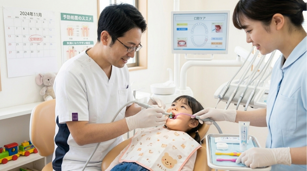 家庭でのケアに加えて、歯科医院での専門的な予防処置を組み合わせることで、虫歯予防の効果は格段に高まります。